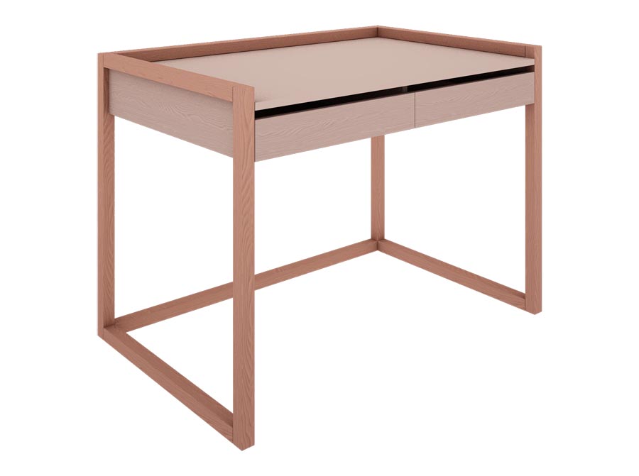 Minimalistyczne i bezpieczne biurko do pokoju dzieci i młodzieży w kolorze różowym. Ponadczasowy design i bezpieczne materiały. Meble dla dzieci Tweens wyprodukowane są zgodnie z normą bezpieczeństwa EN71/3 – norma dla mebli i zabawek dla dzieci. Pomalowane bezpiecznym dla dzieci lakierem wodnym. Biurko ma dwie praktyczne szuflady oraz blat z niewielkim, praktycznym ogranicznikiem. Przykuwające uwagę są nogi biurka wykonane z drewna sosnowego. Są solidną podstawą i ozdobą mebla