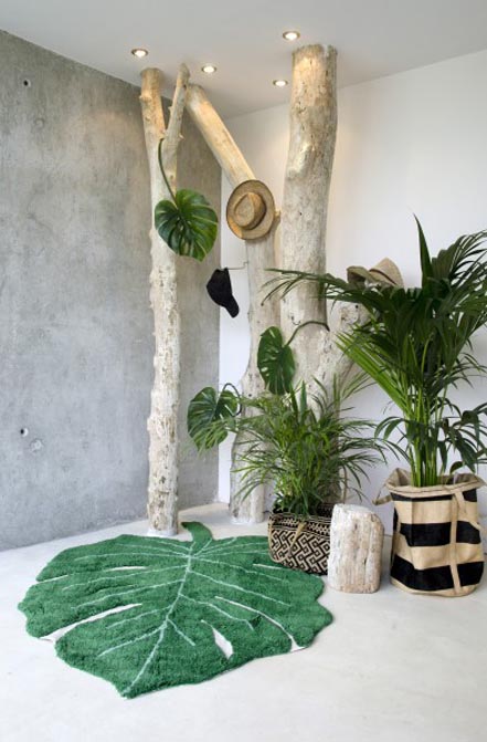 Dywan bawełniany w kształcie liścia palmy Monstera. Prawdziwy hit do salonu, sypialni czy pokoju dziecięcego. Stworzony do prania w pralce automatycznej