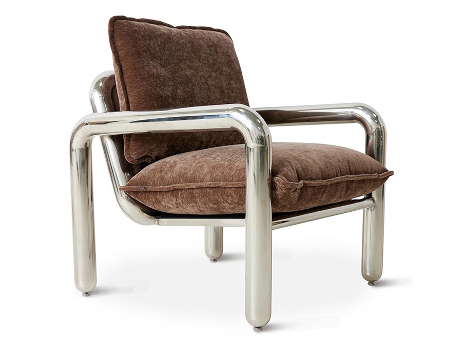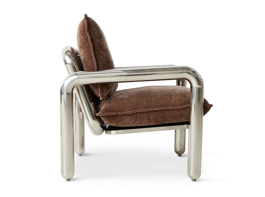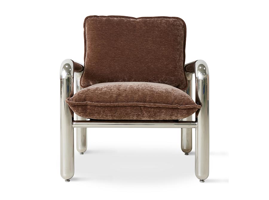 Fotel wypoczynkowy chromowany brązowy velvet, HKliving