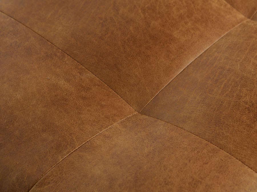 Fotel ze skóry naturalnej z recyklingu w kolorze koniakowym z pikowanym siedziskiem. Idealny do stylowego salonu lub gabinetu. Świetna jakość wykonania. Pasuje do pozostałych mebli tapicerowanych z kolekcji Rodeo (sof i puf)