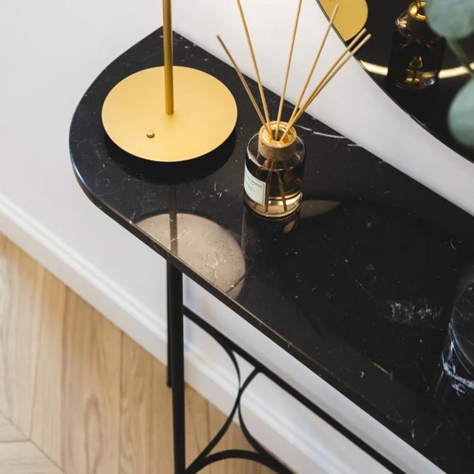 Konsola Liv z marmurowym blatem Nero Marquina, Marle Home