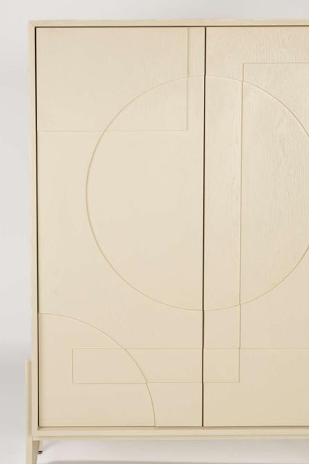 Podziwiaj szafkę Faces tak samo, jak unikalne cechy twarzy. Jette Scheib, projektantka, z którą współpracowaliśmy przy szafkach, jest zafascynowana wysokością i głębią ludzkiej twarzy, którą tworzy światło. Drzwi zostały zaprojektowane z reliefem graficznym i zachęcają do dotyku. Wraz ze zmianą światła w ciągu dnia zmienia się także wygląd szafki. Faces przyciąga wzrok, a jednocześnie oferuje funkcjonalną przestrzeń do przechowywania.
