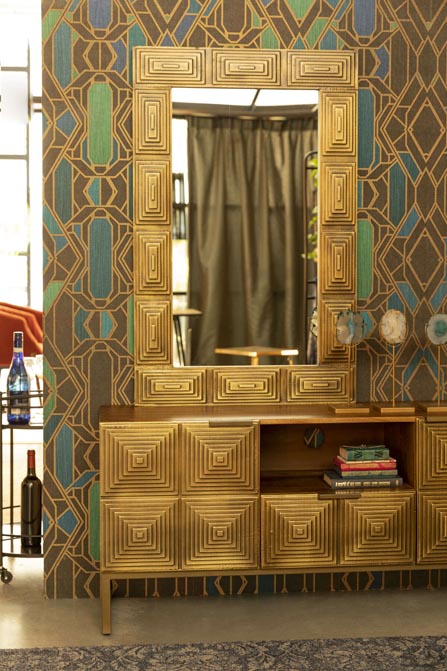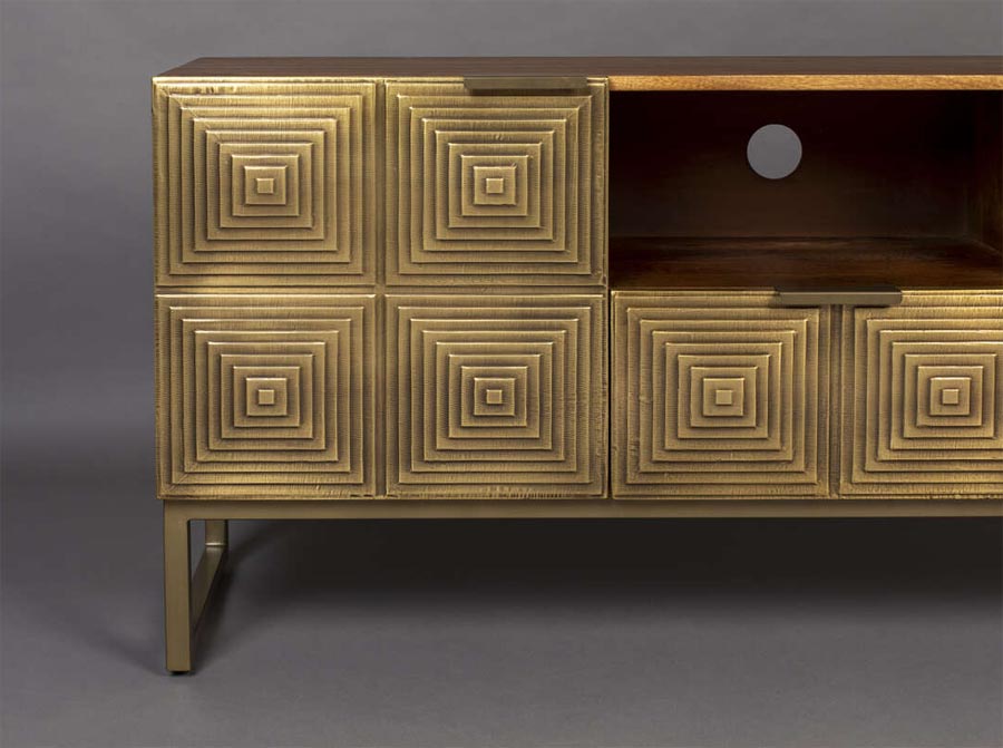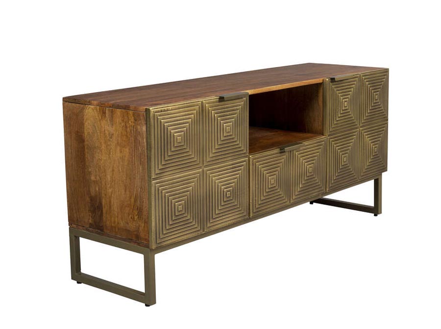 Ekskluzywny kredens dla wymagających klientów w kolorze mosiądzu wykonany z drewna mango.