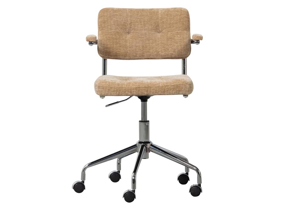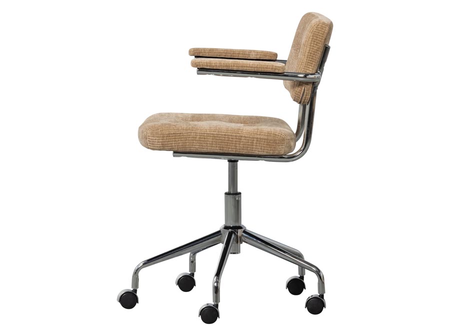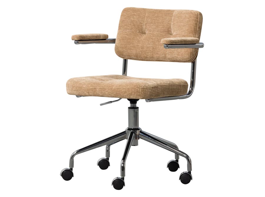 Krzesło tapicerowane, biurowe Kova, wygodne i stylowe zarówno dla ucznia jak i dorosłego. Kova pochodzi z kolekcji holenderskiej marki wnętrzarskiej WOOOD. Krzesło posiada kółka i dźwignię do regulacji wysokości siedziska, tapicerowane siedzisko, oparcie i podłokietniki, co zapewnia wysoki komfort siedzenia. Nie szukaj dalej i już dziś zamów krzesło biurowe Kova w swoim domu.