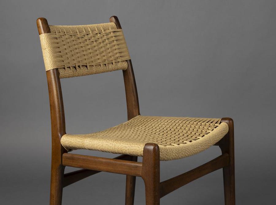 Projekt inspirowany przytulnym klimatem wnętrz z lat 50., 60. i 70., nadając krzesłu przyjemny styl vintage. Jednak to krzesło idealnie pasuje do współczesnego wnętrza. Tym, co czyni krzesło wyjątkowym, jest oczywiście pięknie wykończona drewniana rama oraz efektowne siedzisko i oparcie wykonane z tkanej liny. To połączenie daje charakterystyczny wygląd, który od razu wypełnia pomieszczenie przyjemną atmosferą.