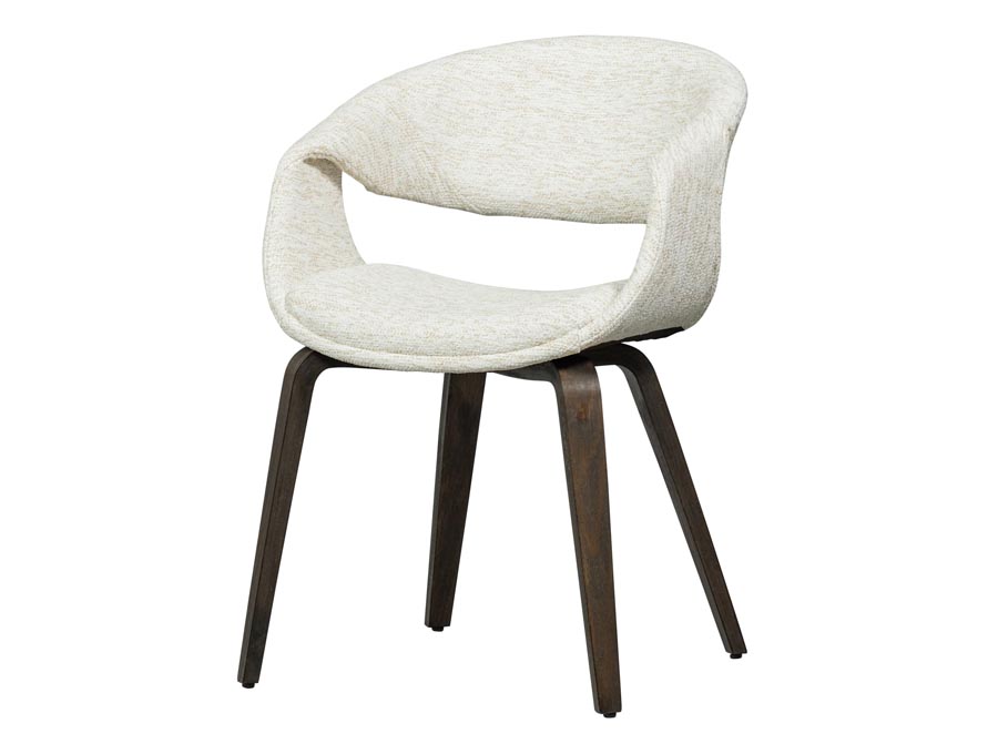 Krzesło tapicerowane do jadalni ma solidną drewnianą podstawę oraz wygodne siedzisko. Krzesło jest dostępne w różnych wersjach, dzięki czemu możesz znaleźć idealne dopasowanie do swojego wnętrza. Yossi jest tapicerowane tkaniną tkaną w 100% z poliestru, co zapewnia stylowy wygląd. Szczególnym szczegółem jest wykończenie wokół podłokietnika. To eleganckie i wygodne krzesło do jadalni jest idealne na długie posiłki. Krzesło dostępne na nogach w kolorze naturalnym lub ciemnym wybarwieniu drewna. Wybierasz w opcjach przy produkcie