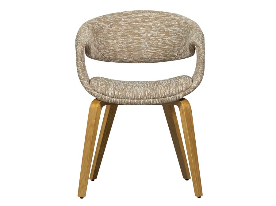 Krzesło tapicerowane do jadalni ma solidną drewnianą podstawę oraz wygodne siedzisko. Krzesło jest dostępne w różnych wersjach, dzięki czemu możesz znaleźć idealne dopasowanie do swojego wnętrza. Yossi jest tapicerowane tkaniną tkaną w 100% z poliestru, co zapewnia stylowy wygląd. Szczególnym szczegółem jest wykończenie wokół podłokietnika. To eleganckie i wygodne krzesło do jadalni jest idealne na długie posiłki. Krzesło dostępne na nogach w kolorze naturalnym lub ciemnym wybarwieniu drewna. Wybierasz w opcjach przy produkcie
