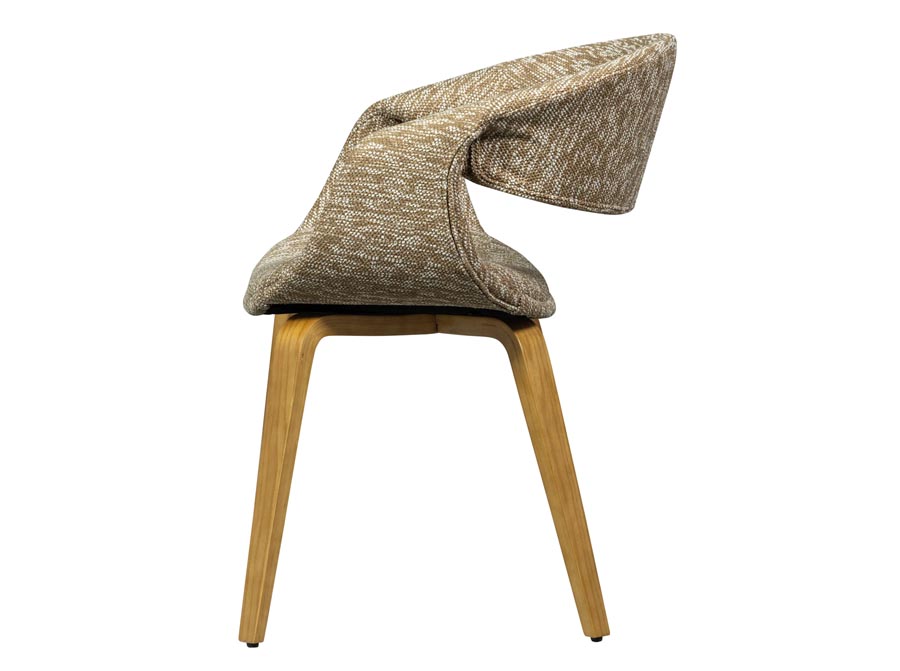 Pokryte naszą tkaniną tkaną z Toskanii krzesło do jadalni Yossi ma miękki i luksusowy wygląd. Skład składa się w 100% z poliestru, co sprawia, że tkanina jest zarówno wytrzymała, jak i wygodna. Tkanina ma ocenę Martindale’a 100 000, dzięki czemu idealnie nadaje się do codziennego użytku.