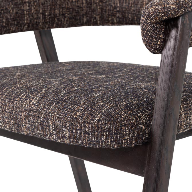 Krzesło do jadalni Tunar z podłokietnikami holenderskiej marki wnętrzarskiej WOOOD wprowadzi do Twojej jadalni relaksującą atmosferę. Naturalne drewno dębowe w połączeniu z brązową tkaniną tworzy ciepły wygląd jadalni. Podłokietniki zapewniają dodatkowy komfort, dzięki czemu krzesło to nadaje się na dłuższe spotkania przy kolacji z przyjaciółmi i rodziną. Dzięki naturalnemu kolorowi i radosnemu wyglądowi krzesło to pasuje do różnych wnętrz. To idealne miejsce na spędzenie przytulnego wieczoru przy filiżance kawy.