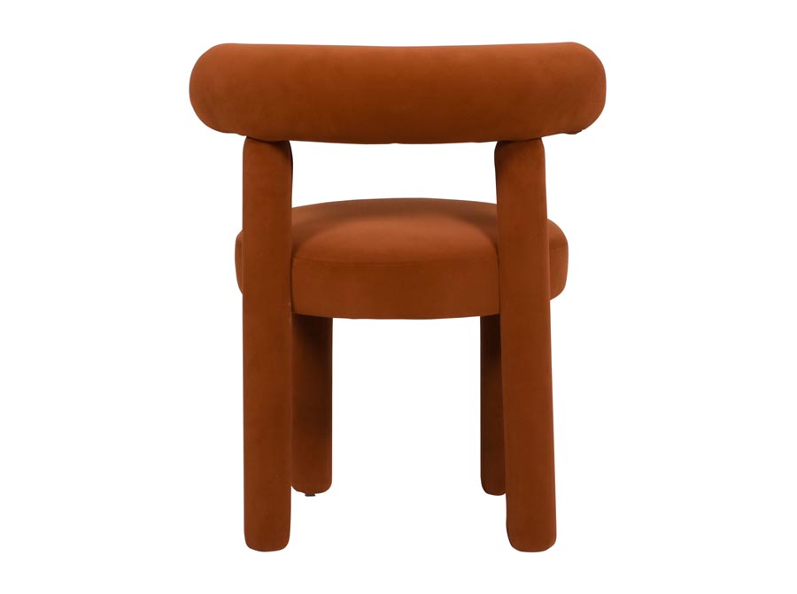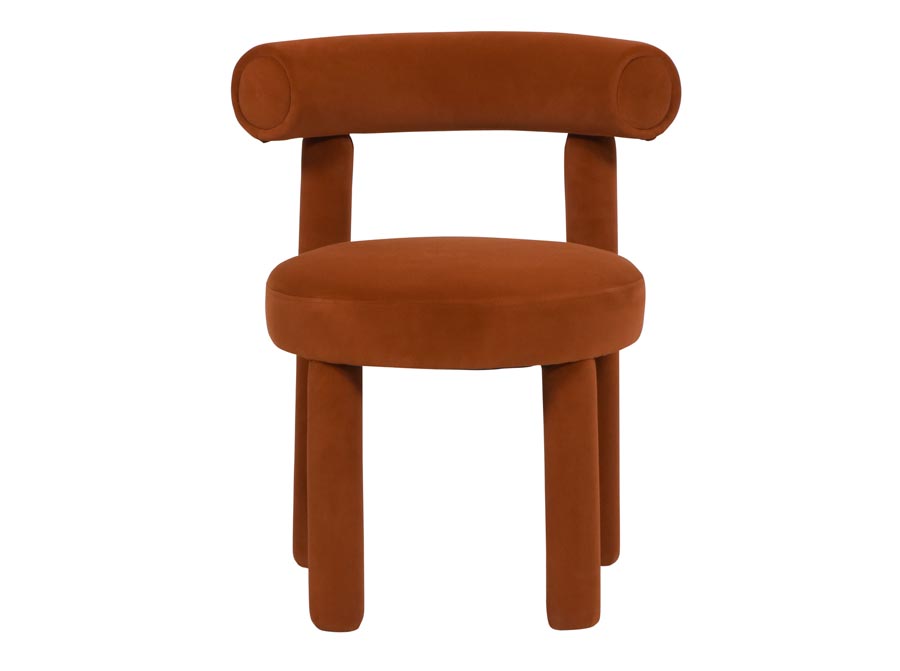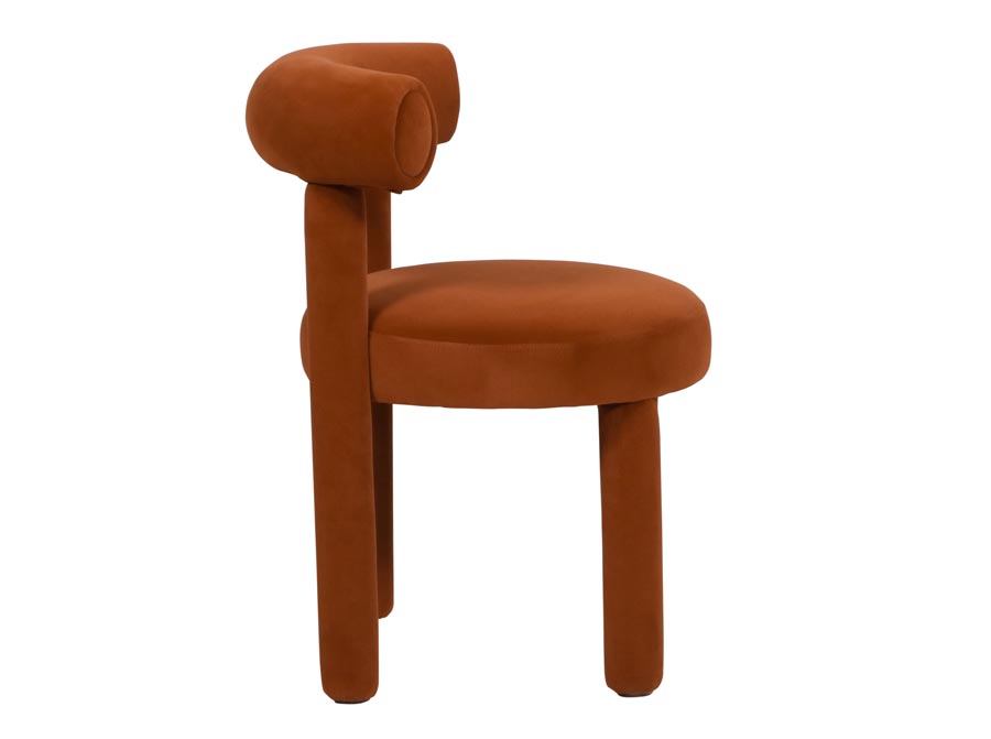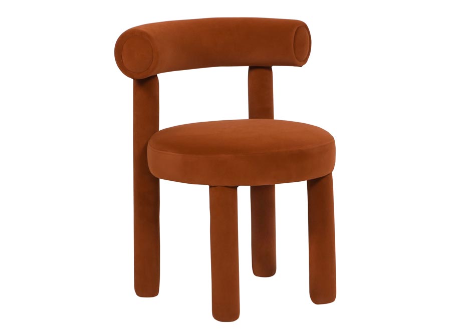 Nowoczesne i komfortowe krzesło tapicerowane w kolorze rdzawym. Uwodzi swoimi miękkimi kształtami. Zwraca uwagę we wnętrzu. Polecamy do salonu, jadalni, sypialni i gabinetu.