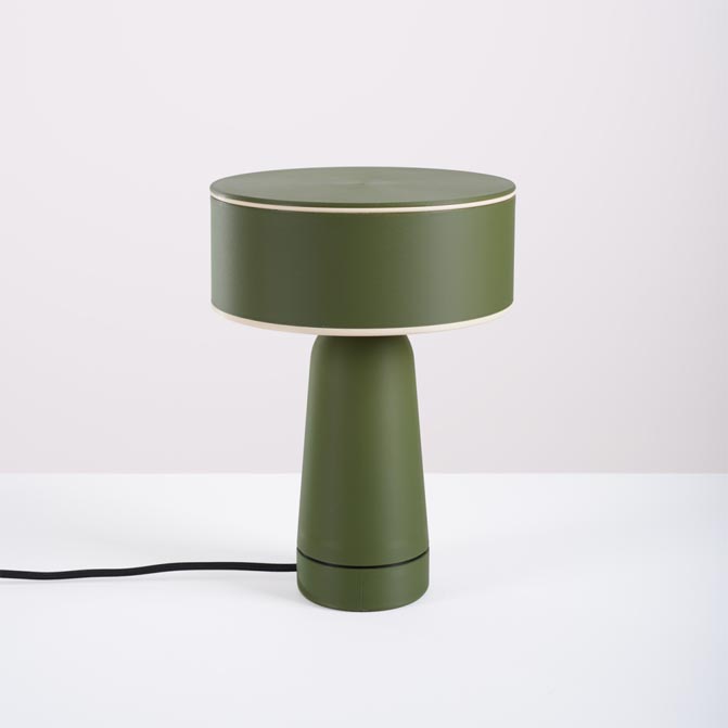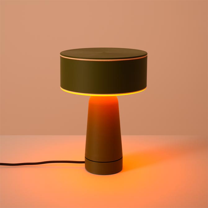 Oliwkowa lampka biurkowa AXO na żarówkę G9 przyciąga uwagę nowoczesną wyrazistą formą i nastrojowym światłem. Obracana górna osłona na żarówkę G9 pozwala wygodnie regulować ilość/natężenie światła, dzięki czemu AXO staje się nie tylko praktycznym oświetleniem, ale też estetycznym akcentem nowoczesnego wnętrza. Axo to projekt Patryka Magiery. Model został wyróżniony w ramach Projektu Młode Światło, realizowanego we współpracy z ASP w Katowicach