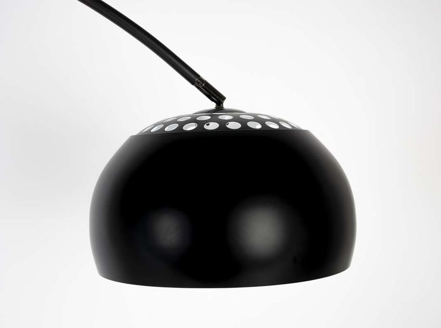 Materiał: lampa wykonana z metalu platerowanego na kolor czarny, podstawa z marmuru również w kolorze czarnym. Posiada ręczny włącznik na kablu.