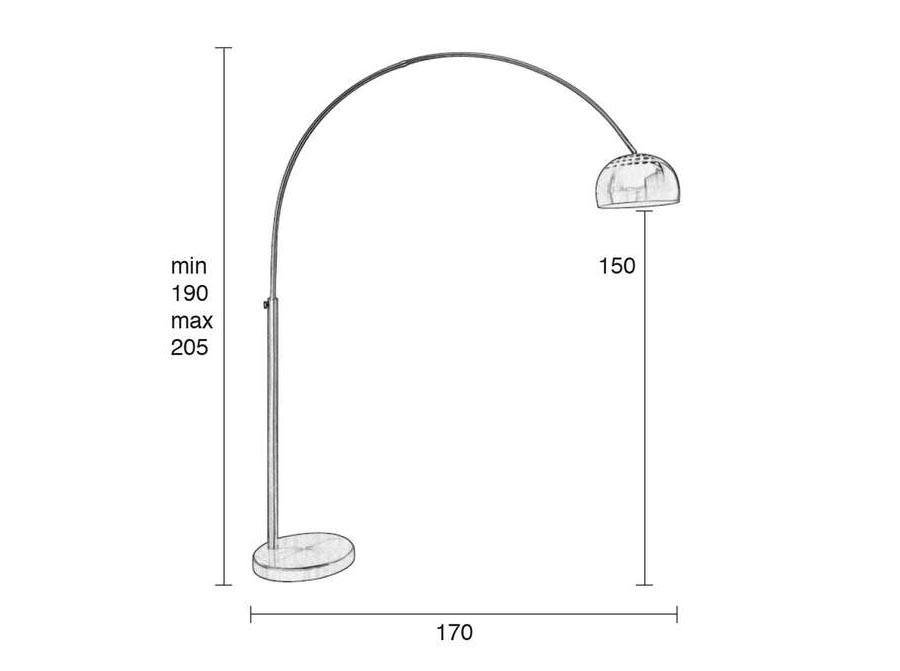 Wymiary: wysokość: 190-204 cm, średnica podstawy: 39 cm, wymiary „główki” lampki: średnica: 32 cm, wysokość: 20 cm, szerokość całej lampy: 165 cm