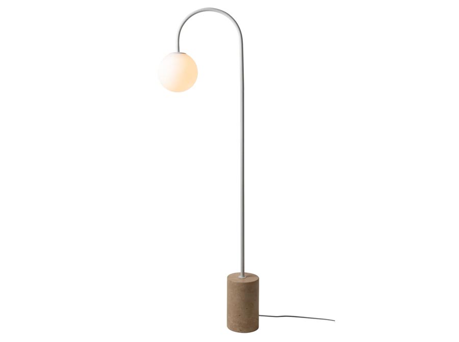 Biały kolor i podstawa jasna z trawertynu nadają tej lampie podłogowej ciepły, nowoczesny charakter. Dzięki smukłym liniom z łatwością odnajdzie się w salonie lub sypialni, tworząc przyjemne, dekoracyjne oświetlenie.