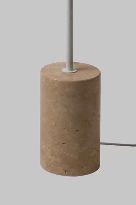 Biała lampa podłogowa na podstawie z trawertynu. Wysokiej jakości wykonanie. Zachwycający element, który potrafi odmienić przestrzeń w Twoim domu.