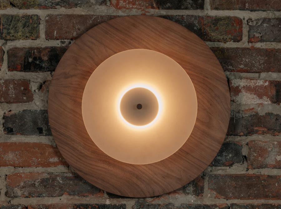Zachowując charakterystyczną dla serii Aeroplan konstrukcję z jednym okręgiem z piaskowanego szkła, wersja ścienna nowego wydania wprowadza subtelny akcent w postaci drewna orzecha amerykańskiego.