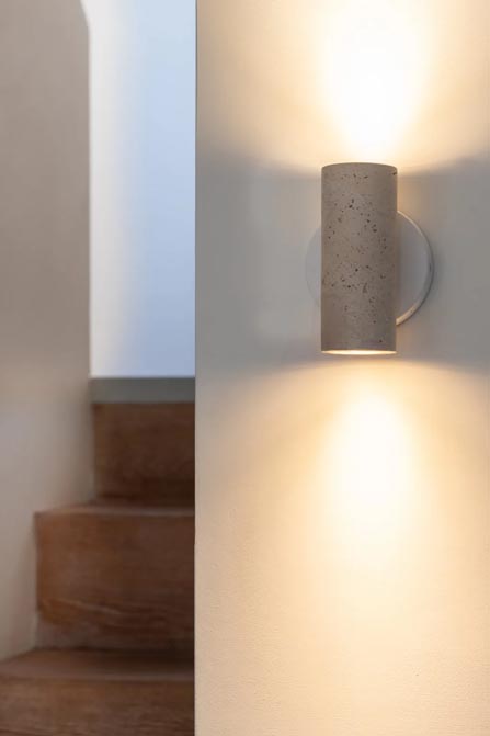 Lampa ścienna wykonana z trawertynu idealna do łazienki lub sypialni. Charakteryzuje się ciepłym, naturalnym wyglądem. Jej mineralna faktura i stonowany odcień pozwalają jej z łatwością wkomponować się w wystrój salonu, sypialni lub korytarza, dodając dyskretnego, ponadczasowego akcentu dekoracyjnego.