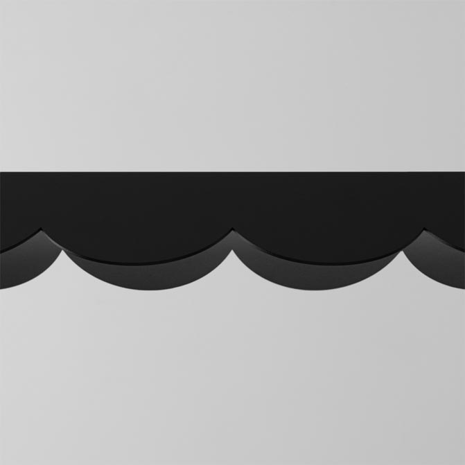 Podłużna lampa w kolorze czarnym w oryginalnym kształcie, który może nam przypominać herbatnik lub płatki kwiatów.