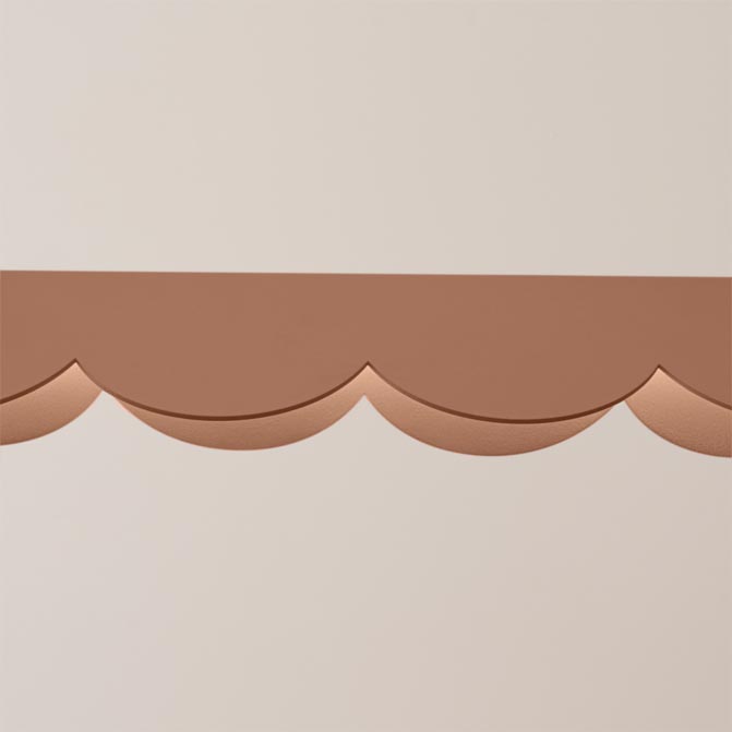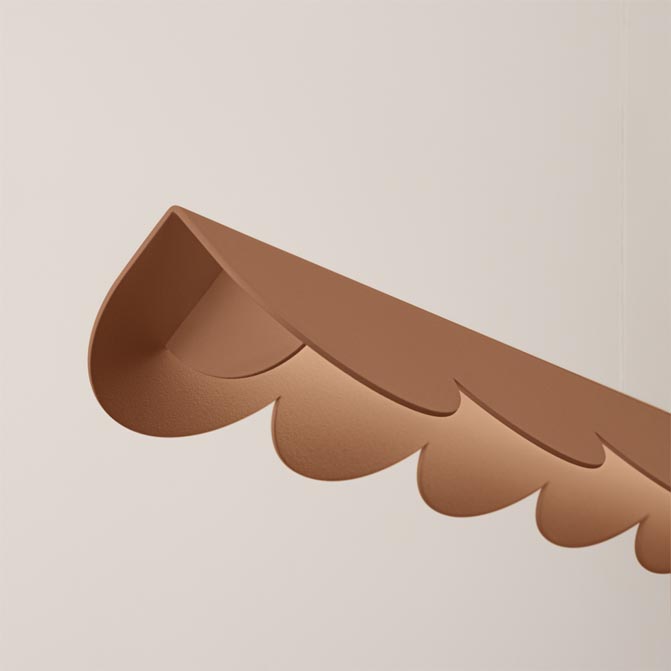 Podłużna lampa w kolorze kawowym w oryginalnym kształcie, który może nam przypominać herbatnik lub płatki kwiatów.
