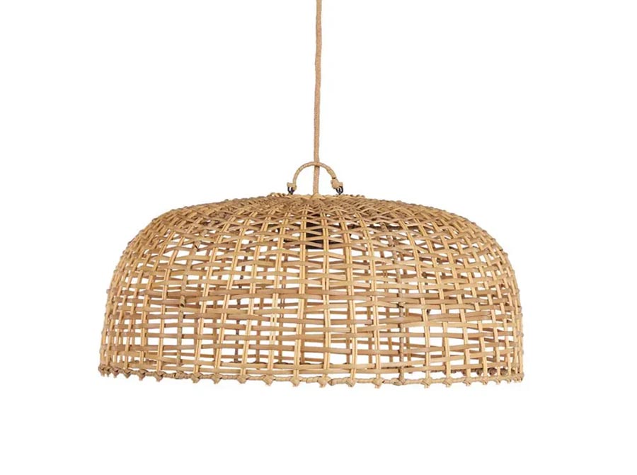 Wprowadź miękkość i styl do swojego domu dzięki lampie wiszącej The Cloche wykonanej ręcznie z naturalnego rattanu.