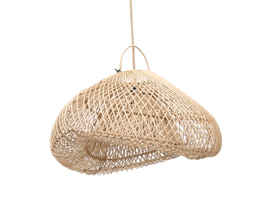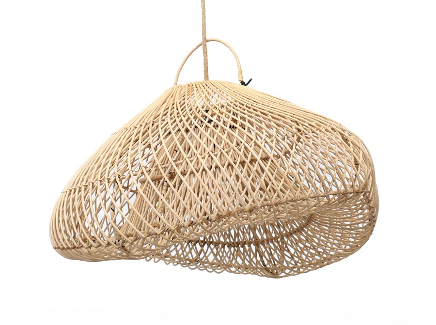 Abażur rattanowy, który kształtem przypomina chmurę. Wykonany ręcznie na Bali w Indonezji. Abażur o średnicy 60 cm świetnie sprawdzi się w sypialni lub salonie. Polecamy również do przestrzeni publicznych. Wszędzie tam gdzie chcesz stworzyć swoją oazę