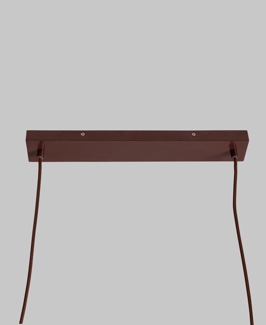 Burgundowa stal podkreśla finezję kompozycji, a kule nadają jej organiczny, świetlisty akcent. 1,75-metrowy kabel w oplocie linowym podkreśla jej naturalny wygląd. Zamontowana nad stołem jadalnym lub w salonie, lampa wisząca tworzy dekoracyjny punkt centralny i rozprasza miękkie światło, które optycznie powiększa przestrzeń.