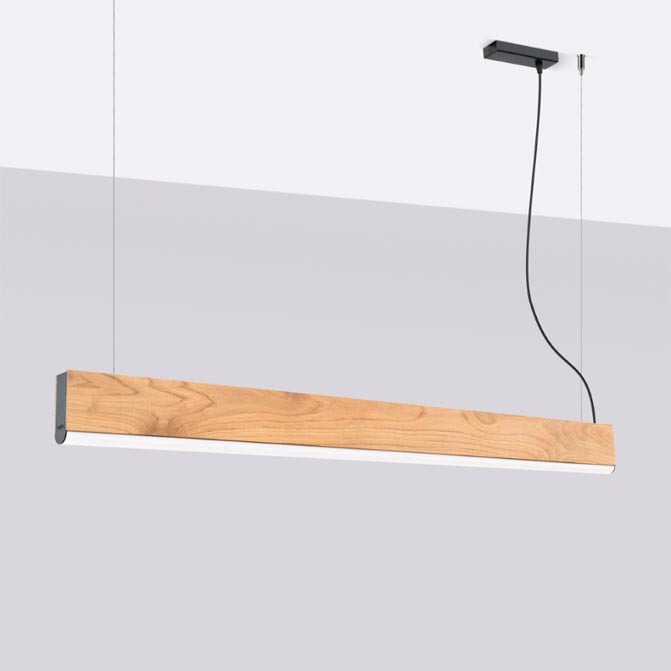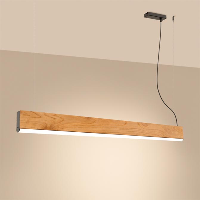 połączenie klasycznej elegancji drewna dębowego z nowoczesną technologią LED. Minimalistyczna forma i ciepły odcień naturalnego surowca sprawiają, że idealnie komponuje się z wnętrzami w różnych stylach. Lampa występuje w dwóch rozmiarach: długość 120 cm i długość: 150 cm