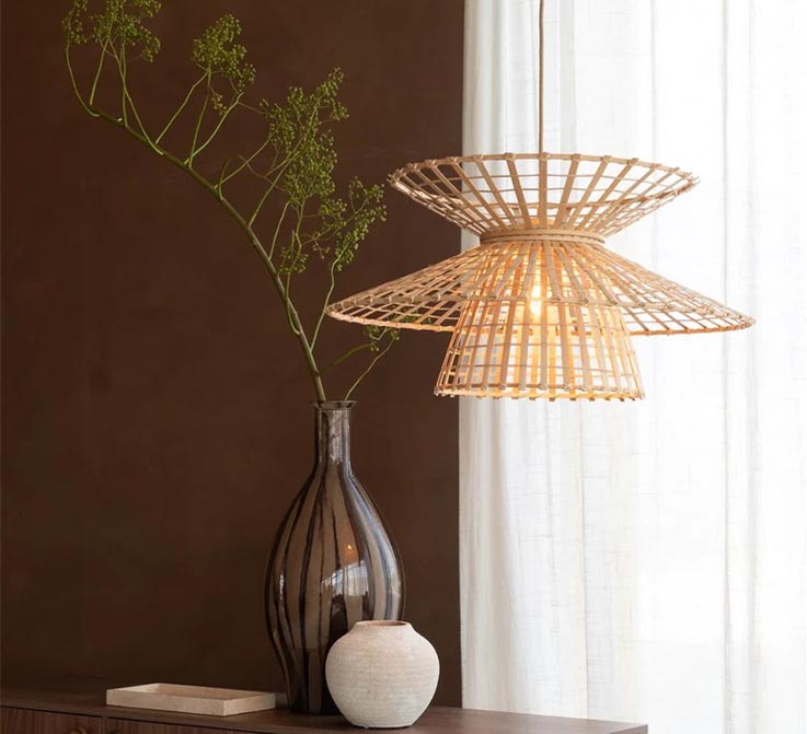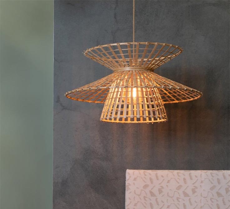 Lampa wisząca bambusowa o oryginalnym kształcie kapelusza lub fascynującej rzeźby. Zwraca uwagę wszędzie tam gdzie się ją powiesi. Zachwyca świetną jakością wykonania