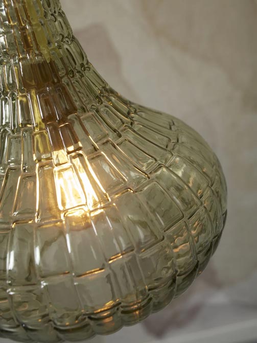 Szklana lampa wisząca, która wygląda jak biżuteria. Piękna i ozdobna, gwarantowany efekt we wnętrzu.