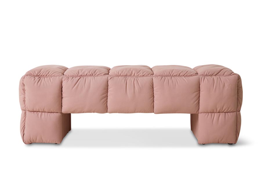 Nowoczesna ławka tapicerowana w kolorze różowym idealna do sypialni. Ta puchowa ławka w stylu lobby charakteryzuje się oryginalnym kształtem i przeszyciami, które dodają jej zarówno komfortu, jak i charakteru. Jej miękka bryła nadaje przytulności każdemu pomieszczeniu — niezależnie od tego, czy umieścisz ją na końcu łóżka, wzdłuż pustej ściany, czy w połączeniu ze stołem jadalnym. Stylowa, uniwersalna i stworzona, by przyciągać wzrok.