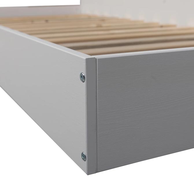 Łóżko drewniane, narożne do pokoju dziecka lub nastolatka z oparciem i schowkiem. Zintegrowany schowek oferuje dodatkowe miejsce na gadżety i inne przedmioty, pomagając utrzymać pokój dziecięcy nie tylko w czystości, ale i przytulności. To przytulne, prywatne miejsce, w którym można bez końca marzyć. Nasza sofa rozkładana Carter to prawdziwy atut każdego pokoju dziecięcego!