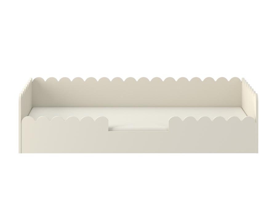 Łóżko Book Nook Bellamy w kolorze latte, idealne do pokoju dziecka. Funkcjonalne łóżko Montessori zaprojektowane z myślą o wspieraniu samodzielności dziecka już od najmłodszych lat. Łączy w sobie piękno i romantyzm oraz bezpieczeństwo i komfort
