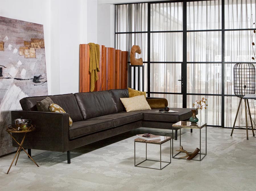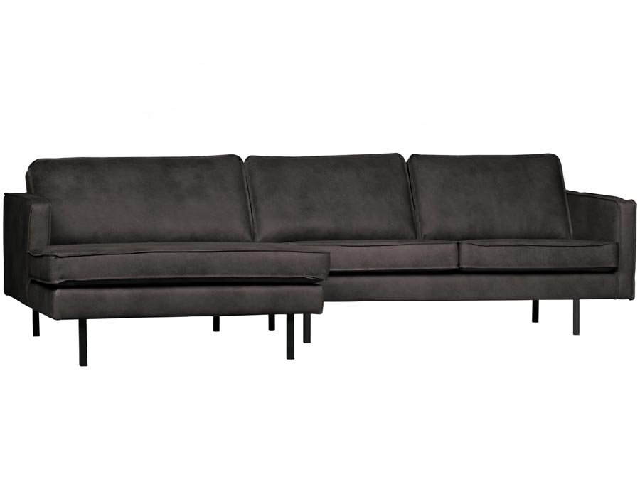 Sofa narożna Rodeo czarny skóra z recyklingu, Woood