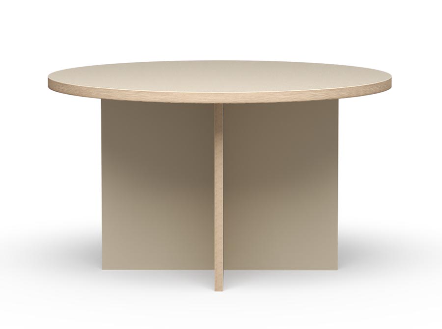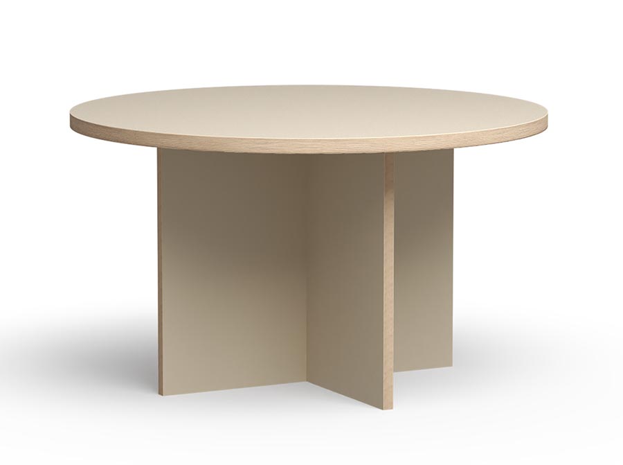 Okrągły stół do kuchni lub jadalni w kolorze beżowym. Wprowadzisz do swojego domu ponadczasowy element wystroju w pięknym, paonadczasowym kolorze.