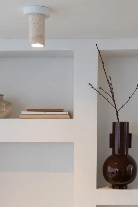 Lampa sufitowa typu plafon wykonana z trawertynu. Zaprojektowana w piaskowym marmurze, lampa wyróżnia się naturalnym, ponadczasowym wyglądem. Jej dyskretna obecność podkreśla sufit, dodając mu jednocześnie dekoracyjnego charakteru. Dzięki stonowanej kolorystyce idealnie wpasowuje się zarówno do salonu, jak i wejścia.