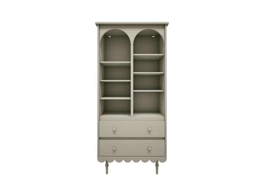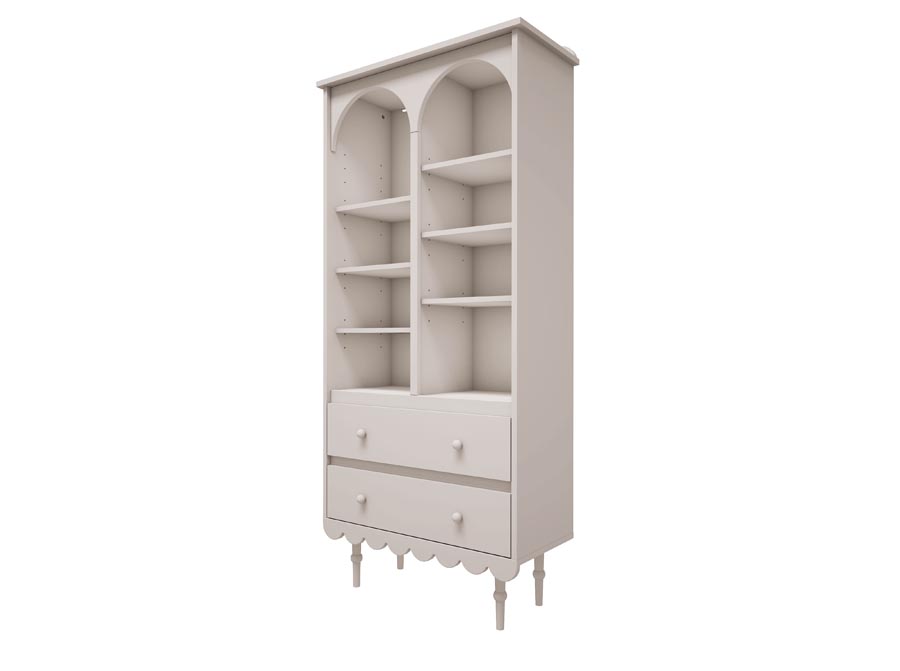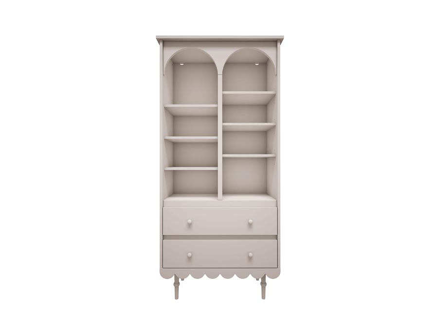 Regał dla dzieci Babushka posiada kilka półeczek na książki, gry, czy zabawki oraz dwie pojemne szuflady wyposażone w wysokiej klasy prowadnice z samodomykiem. Dodatkowo, w trosce o bezpieczeństwo dzieci, mebel został wyposażony w system zapobiegający przewracaniu się.