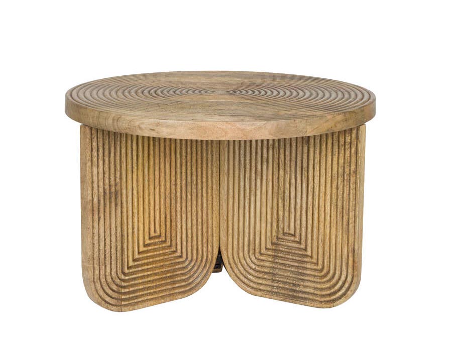 Drewniany stolik kawowy, ryflowany. Wykonany z drewna mango. Niesamowity wygląd przykuwa uwagę we wnętrzu. Stolik również dostępny w mniejszym rozmiarze, wyższy. Idealny sam lub w komplecie. Świetnie pasuje w otoczeniu jasnych kolorów