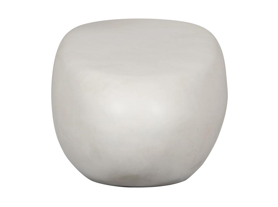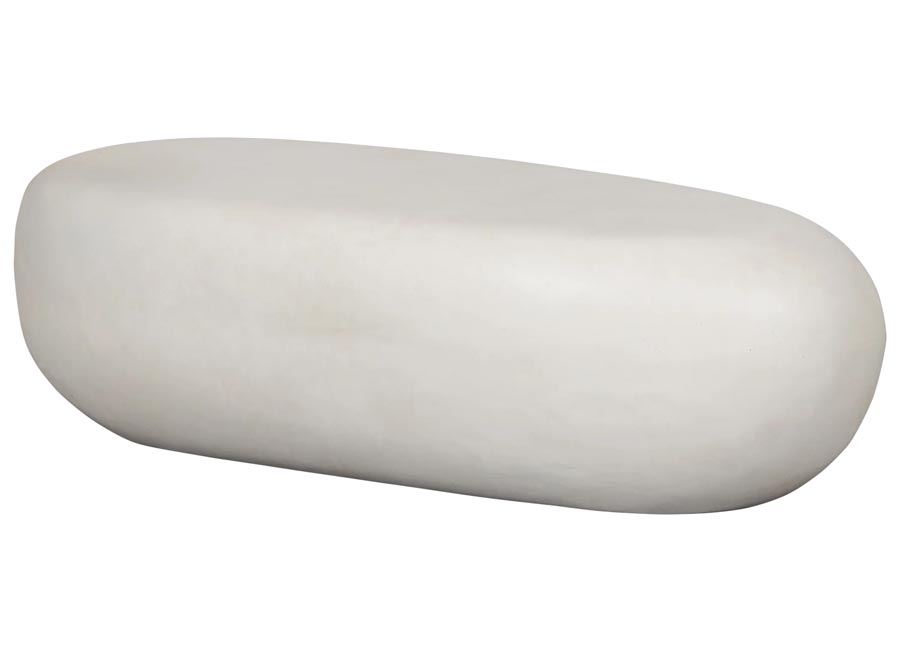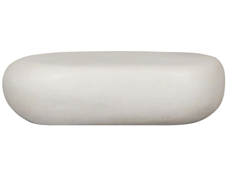 Stolik kawowy wykonany z włóknistej gliny o wyglądzie betonu i świeżym, białym wykończeniu. Wyjątkowy przedmiot o ponadczasowym, organicznym designie.