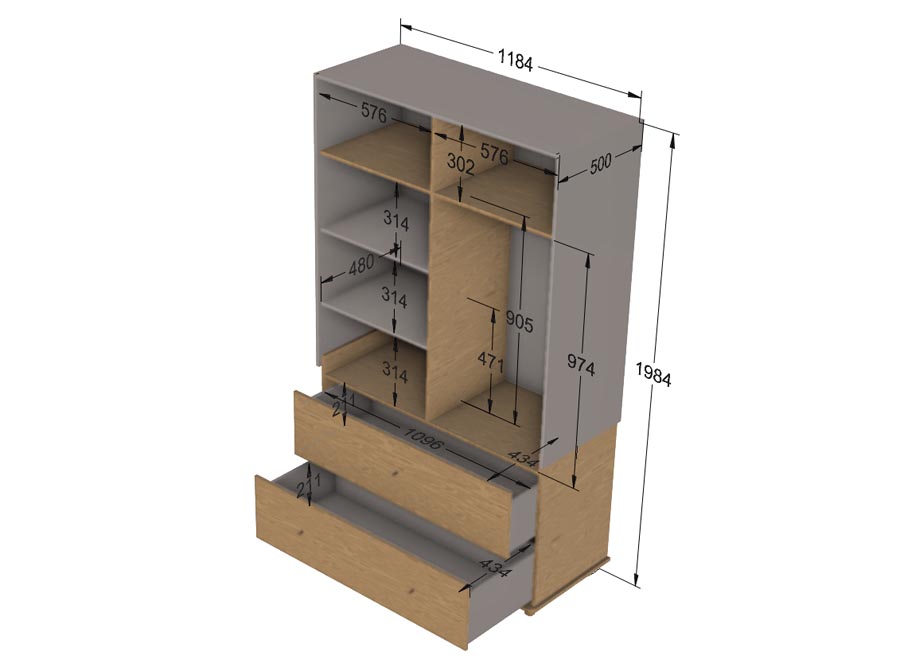 Wymiary: wysokość: 200 cm, szerokość: 120 cm, głębokość: 52 cm