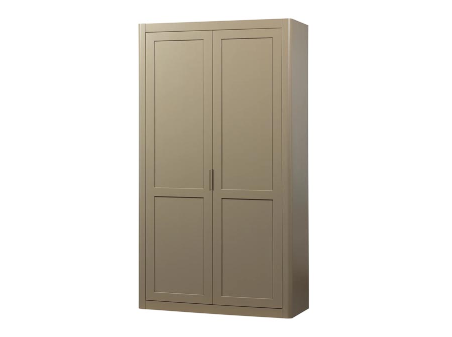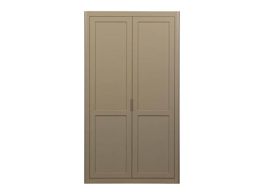 Piękna, stylowa szafa wykonana z drewna sosny o matowym wykończeniu w pięknym, głębokim kolorze – mud. Szafa ma mnóstwo miejsca do przechowywania