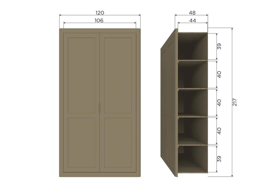 – Głębokość wnętrza szafki: 43 cm
