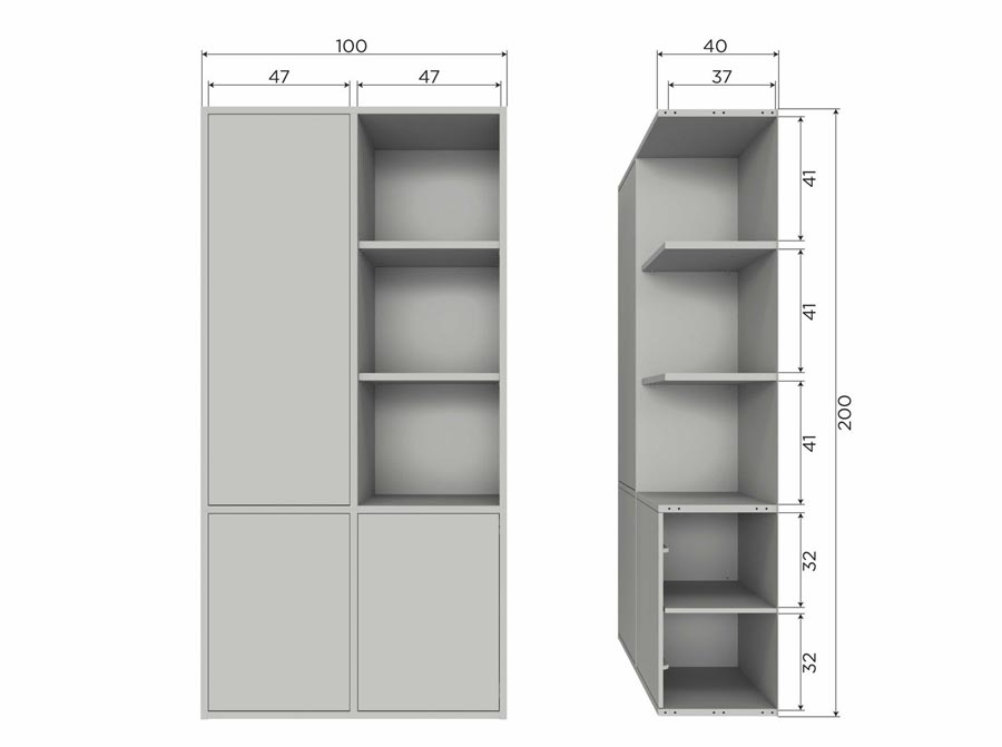 Wymiary dolnych przegródek: wys. 31,6 cm x szer. 46,5 cm x gł. 37,5 cm
