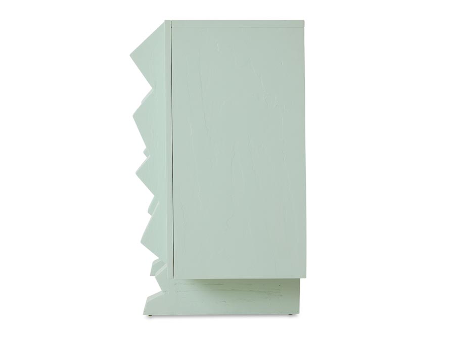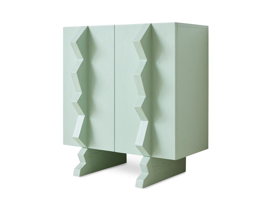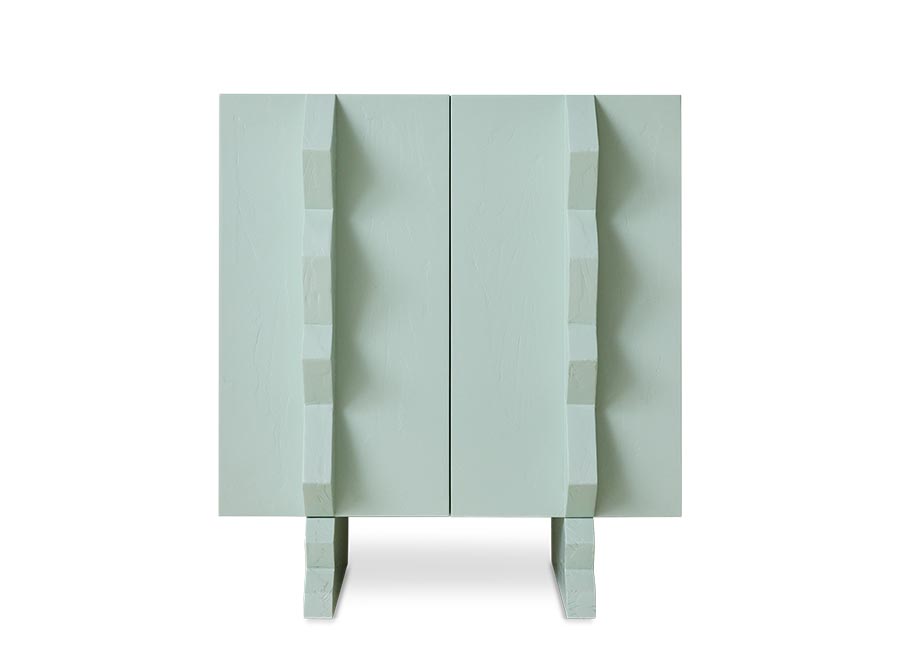 Szafka Forma HKLiving. Graficzna i funkcjonalna z nutą nowoczesności. Forma łączy smukłą, sześcienną bryłę z rzeźbiarskimi, wyrazistymi uchwytami, które idealnie przełamują symetrię. Wykończona w świeżym, lodowo-niebieskim odcieniu, ta szafka łączy w sobie czysty design z zabawnym akcentem – praktyczne miejsce do przechowywania o wyrazistej osobowości.