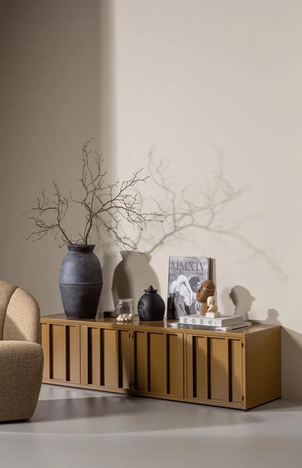 Szafka pod telewizor Level marki WOOOD oferuje praktyczną przestrzeń do przechowywania dzięki kilku szafkom z drzwiami. Dwa otwory na kable z tyłu pozwalają na ich funkcjonalne ukrycie. Elegancki design sprawia, że meble pasują do wnętrz w różnym stylu.